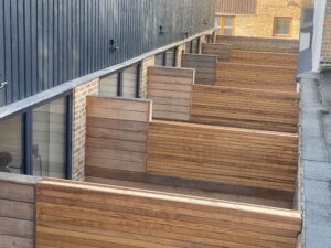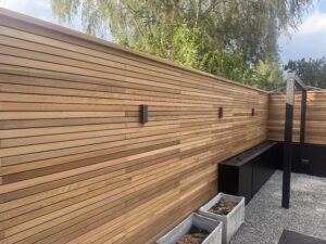 A professionally designed fence creates a coherent whole with the entire outdoor space arrangement.